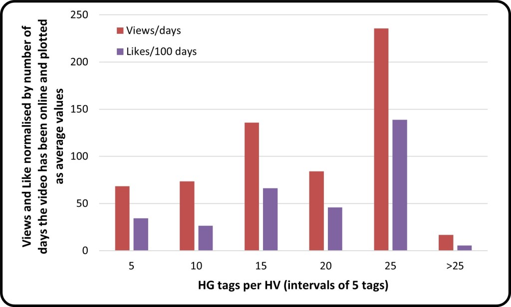 Table 3 shows the three most and least common tags used grouped by the by the three categories. A more detailed description of each of these tags can be found here. More HVs need to be curated to accurately assess if some of these HG tags are more or less prevalent with more popular and engaging HVs.
